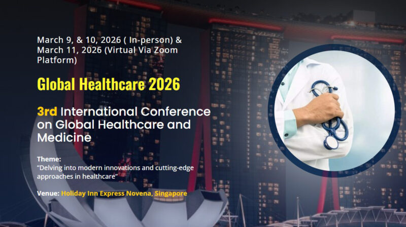 We are pleased to invite you to join us as a Keynote Speaker at the 3rd International Conference on Global Healthcare and Medicine 2026. The event will take place in a hybrid format. In person on March 9 and 10, 2026, and virtually on March 11, 2026. At Holiday Inn Express, Novena, Singapore.