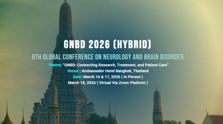 I am pleased to invite you to serve as a Keynote Speaker at the 8th Global Neuro and Brain Disorders (GNBD) Conference, scheduled for March 16–18, 2026, at the Bangkok Ambassador Hotel, Thailand.