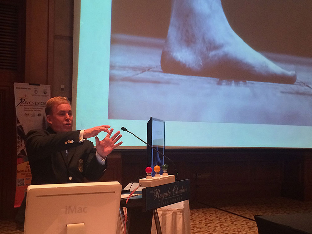 Dr James Stoxen DC gives the presentation Ways Physicians, Coaches and Athletes can Improve Athletic Performance by the Earliest Detection, Intervention and Prevention of Spring Stiffness Over Modulation at The World Congress In Sports and Exercise Medicine in Kuala Lumpur, Malaysia 2014